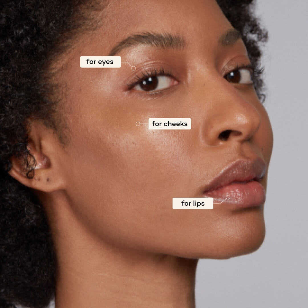 How to use: Apply directly to eyes, lips + cheeks and blend in with fingers. Tip: Warm a little on your fingertips and apply where you want for easier blending.