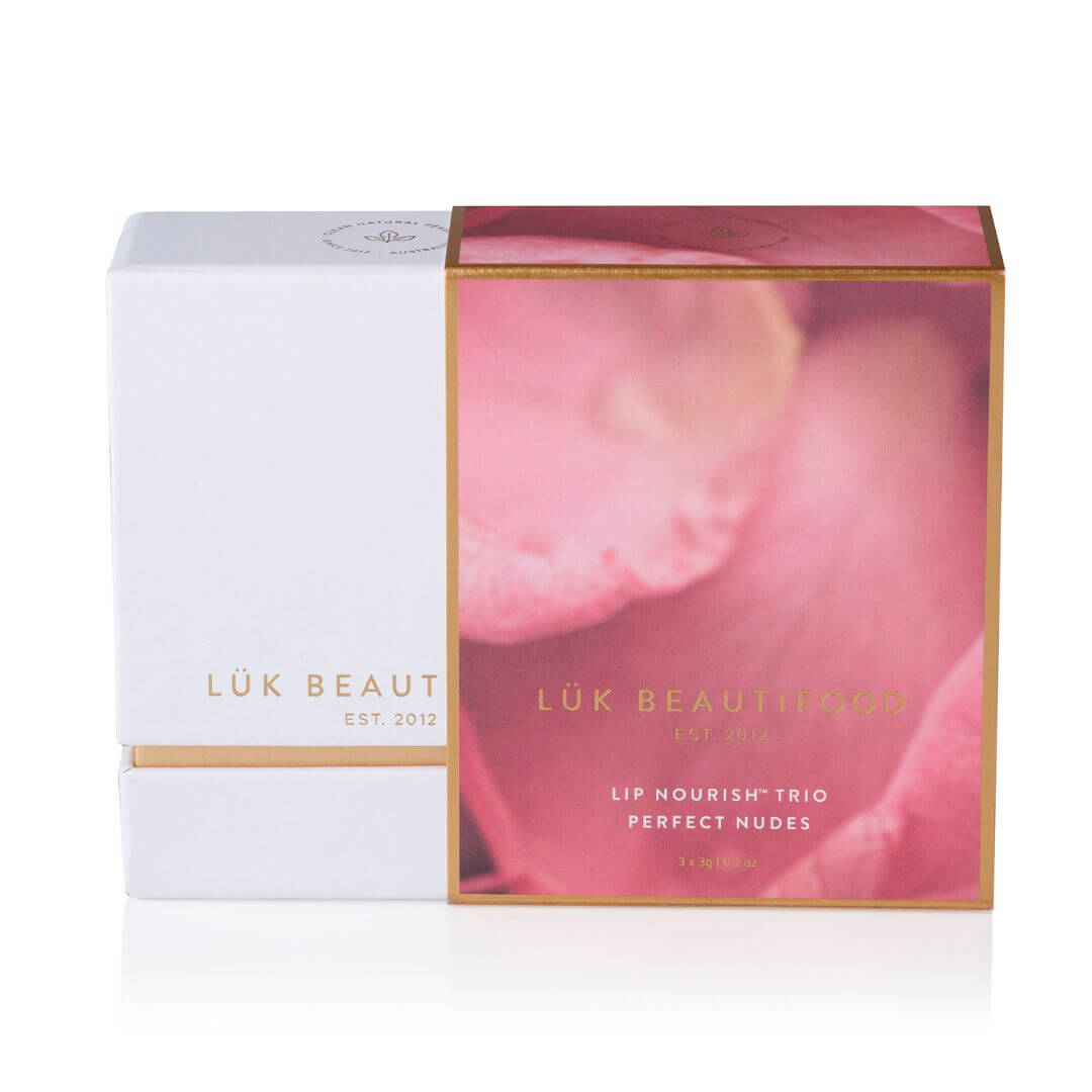 All Lip Nourish™ in this trio features Lük Beautifood’s proprietary AAA Hydra-Soft Complex™, a potent botanical blend of oils, butters and waxes to comfort and replenish lips.